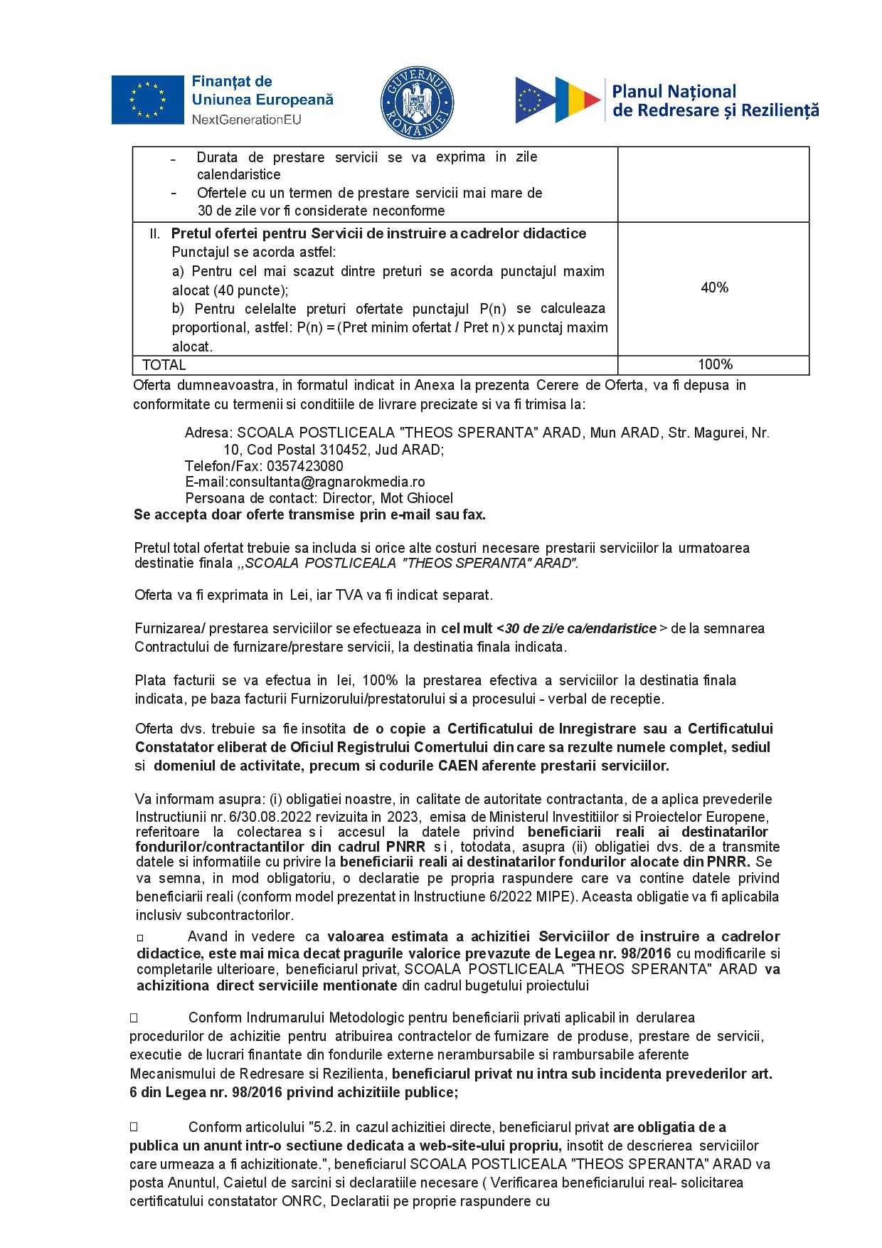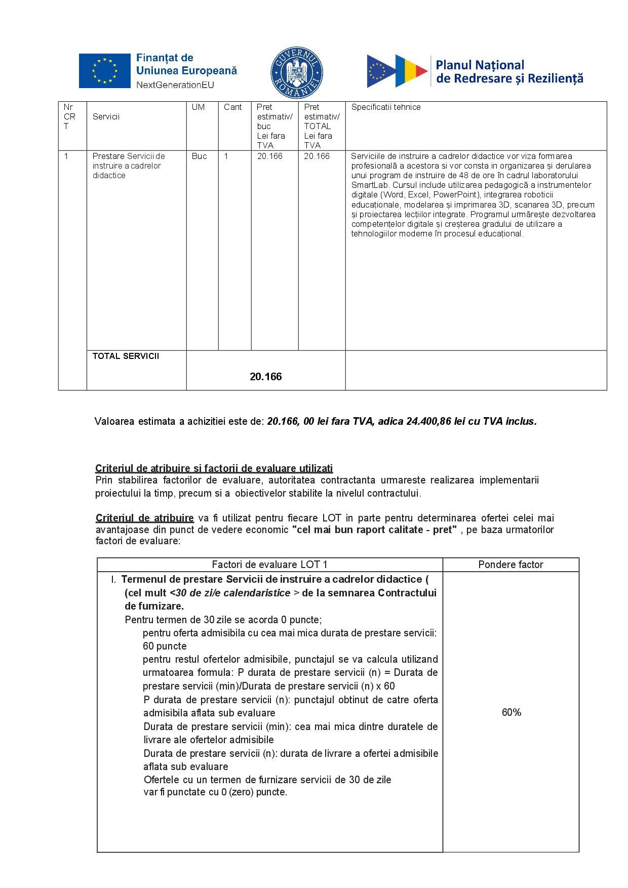 In acest sens, sunteti invitati sa trimiteti oferta dumneavoastra de pret pentru Servicii de instruire