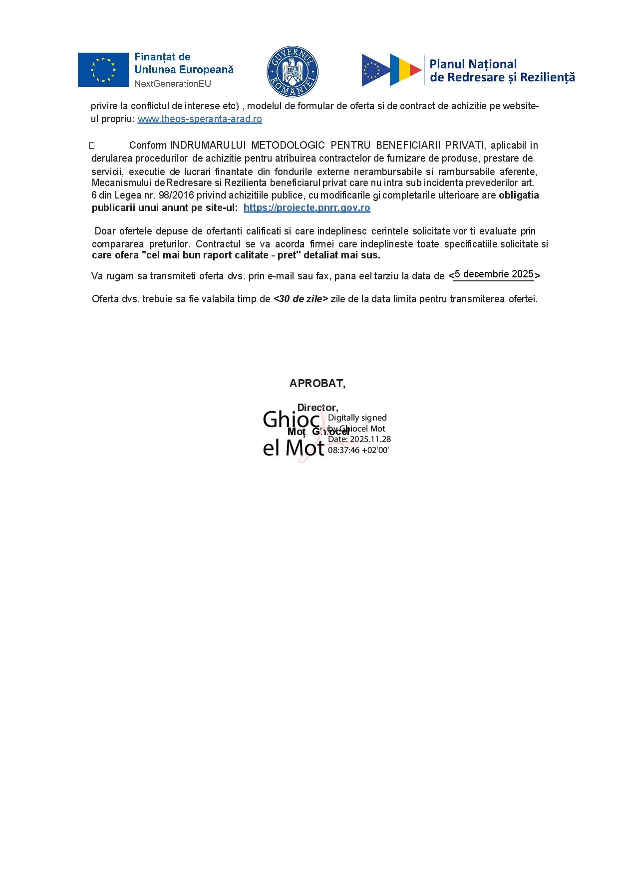 o parte din fonduri pentru achizitia produselor pentru care a fast emisa prezenta cerere de oferta.